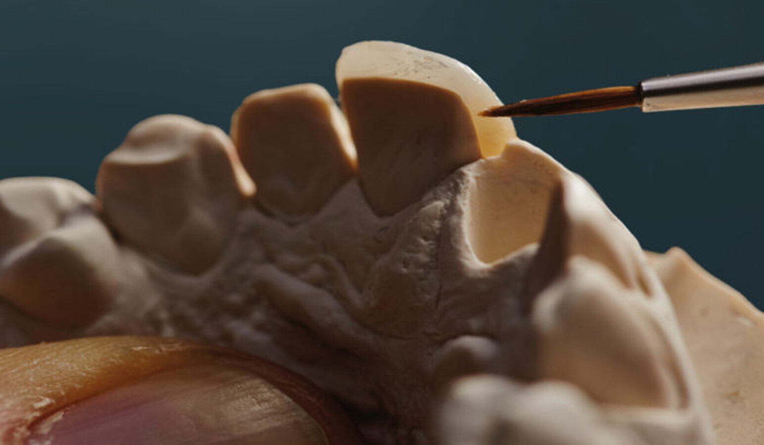 How can the restoration be held during characterisation? The easiest option is the use of putty material on a carrier. The crown is simply placed on the unset putty and then positioned on the carrier. The surface of the restoration should be cleaned with a gentle stream of air before applying the pastes. Thanks to the ceramic particles in CERABIEN ZR FC Paste Stain, the pastes stay put during processing and do not flow away.