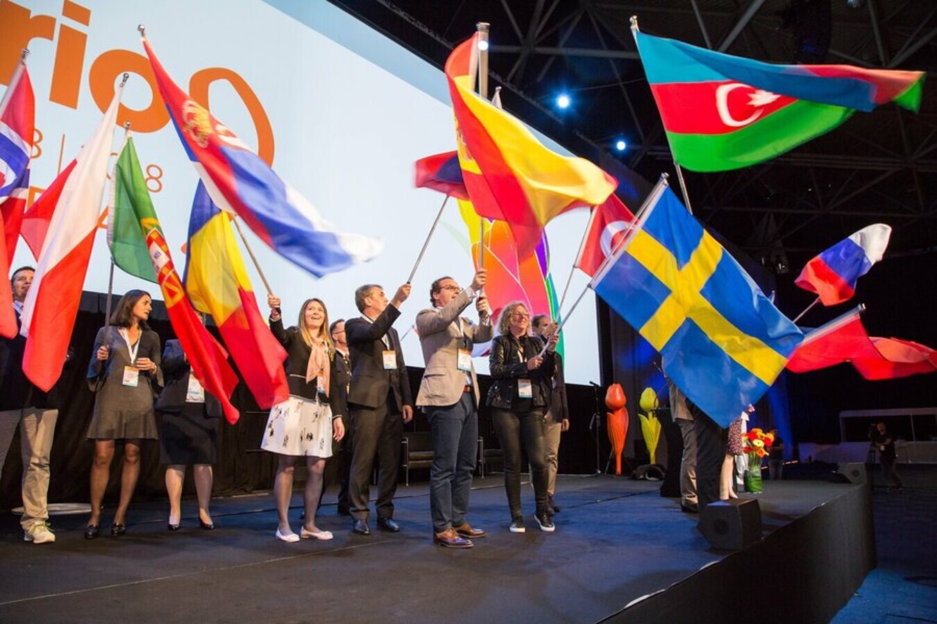 In the EuroPerio operning ceremony, member societies of the EFP are traditionally invited onstage to parade their national flags in front of the audience. (Image: EFP)